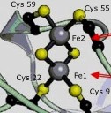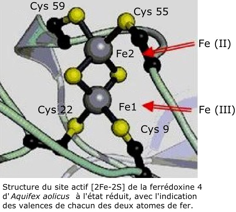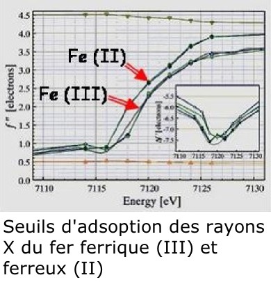 Figure 2) ont permis de déterminer les spectres d'absorption individuels de chacun des deux atomes de fer du site actif, et d'en déduire leurs valences. L'atome de fer réduit (valence II) a pu être localisé sans ambiguïté dans la structure (