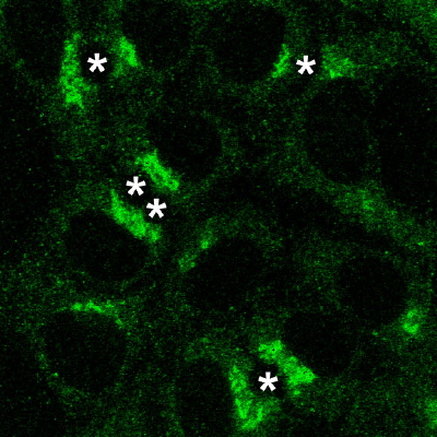 Le milieu de culture ne contient que le cuivre basal. La protéine est détectée dans le Golgi, entre les noyaux et le canalicule, où elle joue son rôle basal de transfert du cuivre.