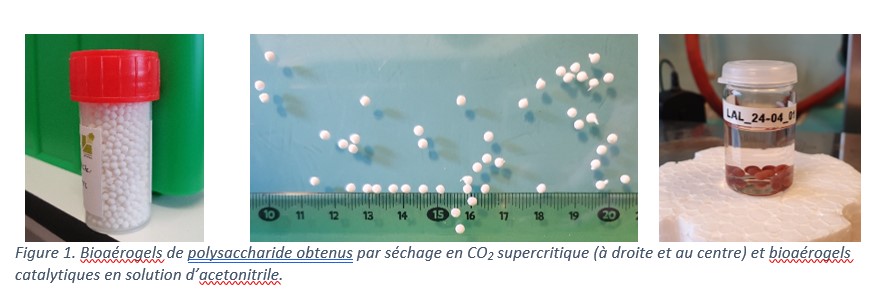 To achieve this, bioaerogels are prepared from bio-based polysaccharides that capture CO₂ through chemisorption. These bioaerogels are then functionalised with inorganic complexes capable of catalysing the oxidation of alkenes into epoxides or the insertion of CO₂ into the latter to produce COCs at room temperature and low gas pressure. Thanks to the use of green oxidants (O₂ or H₂O₂) and the reuse of the catalyst, COC production would be less costly and less impactful on the environment, while contributing to the economics of carbon dioxide capture and utilisation strategies.