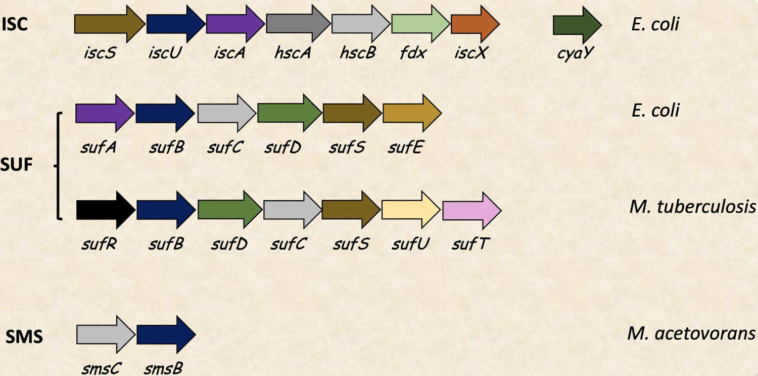 Mycobacterium tuberculosis, which constitutes an interesting therapeutic target against Tuberculosis. The team is also working on the ISC system, composed by IscS-IscU-IscA-HscA-HscB-Fdx-IscX and CyaY proteins, with a focus on IscS, IscU and CyaY proteins. We have recently initiated also the structural and functional characterization of the ancestral SMS system.