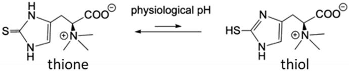 [1]. Only fungi and bacteria are able to produce it, eukaryotes adsorb it through the diets. There is a growing interest in EGT for its potential health benefits and its role in aging, virulence, dementia and preeclampsia. The literature suggests that the primary role of EGT may be more specific than antioxidant, playing a cofactor role in some enzymes. Indeed the unique chemical functions building EGT: the trimethyl ammonium coupled to a carboxylate and the thione-imidazol group suggest a role for specific interactions. (Figure 1)